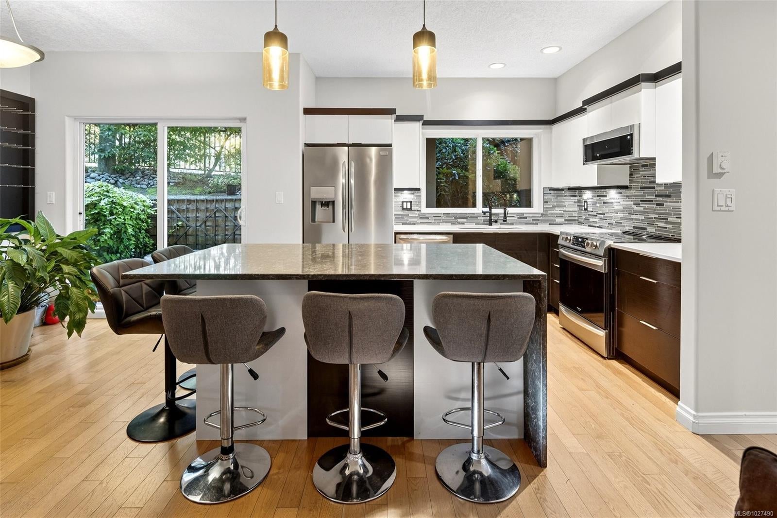 Opportunity to purchase this exceptional 3 bedroom, 3 bathroom townhouse offering over 1550 sqft of thoughtfully designed living space across three levels. A well managed 15 unit complex in the desirable Oaklands neighbourhood, this bright and inviting home features an open concept main floor with a spacious recently renovated kitchen flowing seamlessly into the dining/living areas. Step outside to the private garden, perfect for bbqing and entertaining. Upstairs, with a ceiling height up to 10+ft are two generous sized bedrooms, including a primary with a 4piece ensuite, another full 4-piece bathroom and office nook. The lower level includes a versatile third bedroom that could also serve as a media room, office/gym, along with laundry and access to your own single car garage. Centrally located near Summit Park, Cedar Hill Golf Course, Hillside/Mayfair Malls, schools, and parks. This 2006 home offers the perfect blend of comfort, style and convenience.